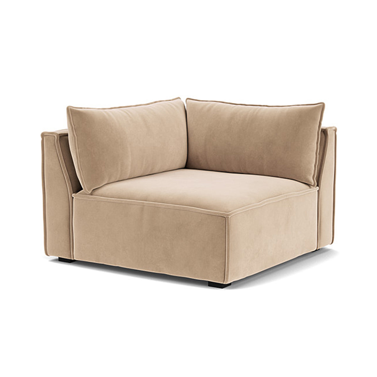 Right corner modular piece, velvet upholstery, recycled polyester blend, various colourways available.