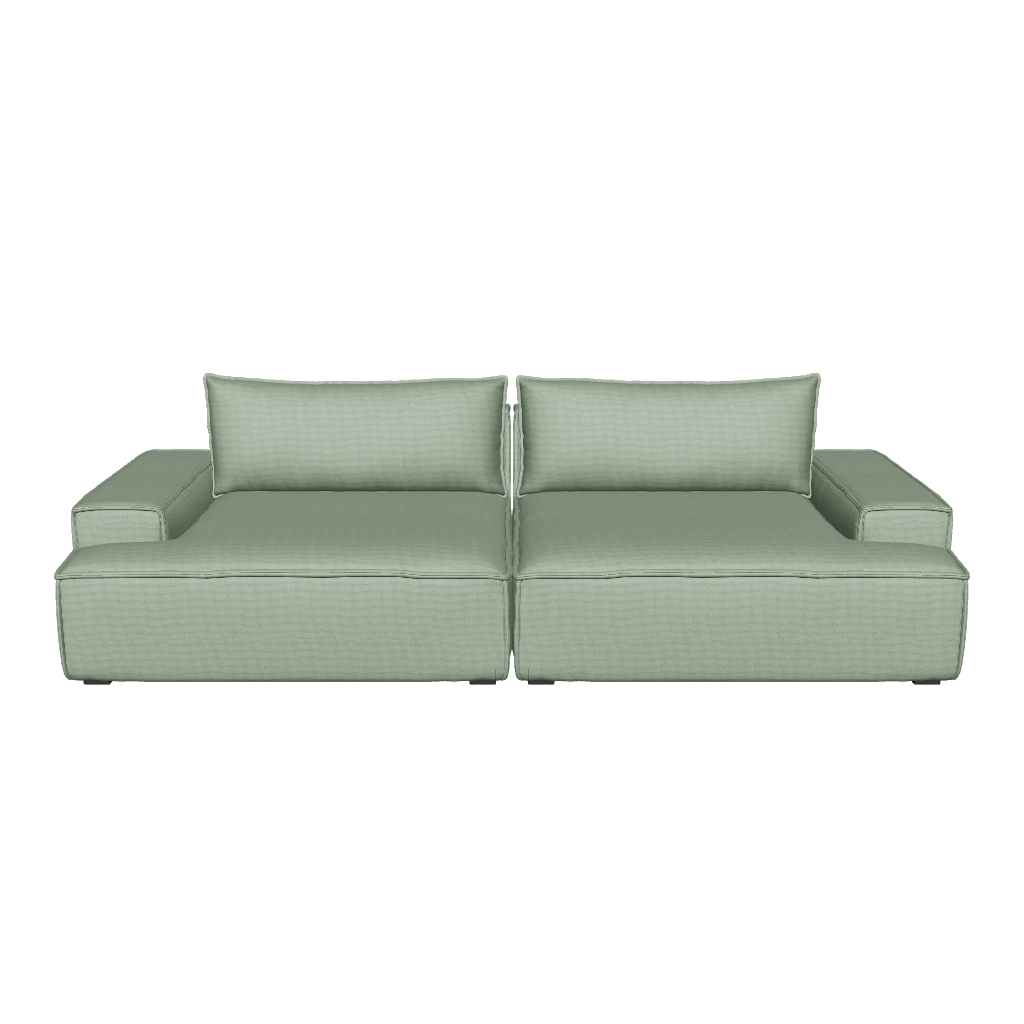 Daphne is a modular sofa, and it's a sofa that really invites to kick back with style with its low and deep seating comfort. The low armrest and the ultrasoft seat and back-cushions emphasise the floater-look, and the invisible legs make the sofa appear light despite its somewhat heavy body.