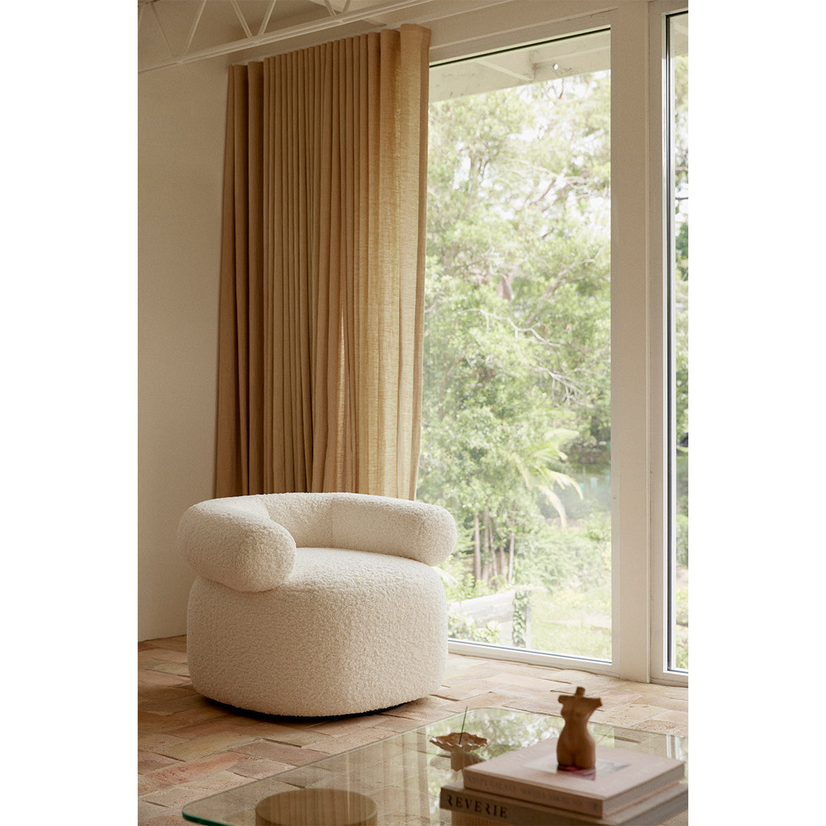 The Huggy Swivel Armchair is an occasional swivel chair, designed to make you feel as though you are embraced in a warm hug every time you sit down. This stunning piece details the perfect blend of comfort and style, elevating any living space or bedroom with its unique sculptural expression. ELLISON STUDIOS. is a leading Australian brand with pieces inspired by 70s design and laid-back living, available exclusively at Life Interiors.